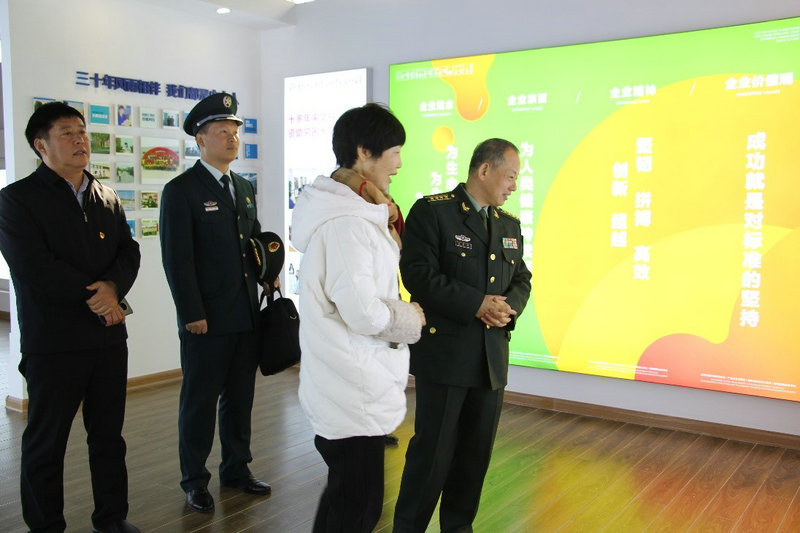 2020年12月16日上午,漯河市军分区政委熊金敏一行到公司参观指导工作。谢总陪同参观并介绍公司发展情况。